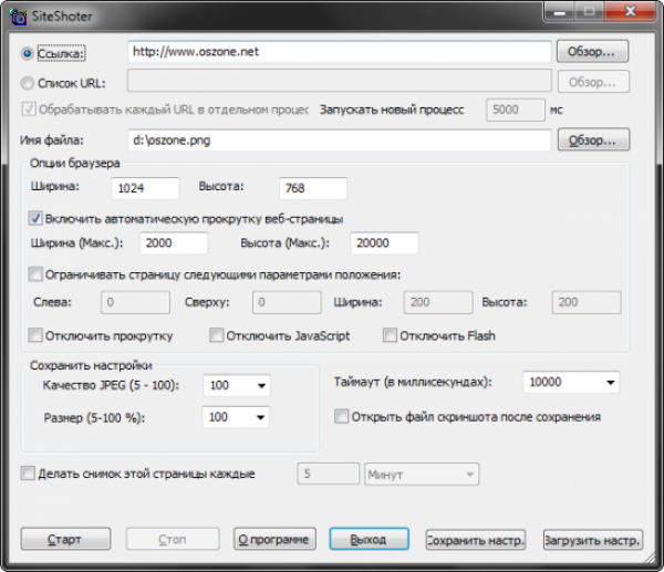 SiteShoter – это небольшая утилита, при помощи которой вы сможете делать скриншоты веб страниц и сохранять их на жестком диске в графическом формате.