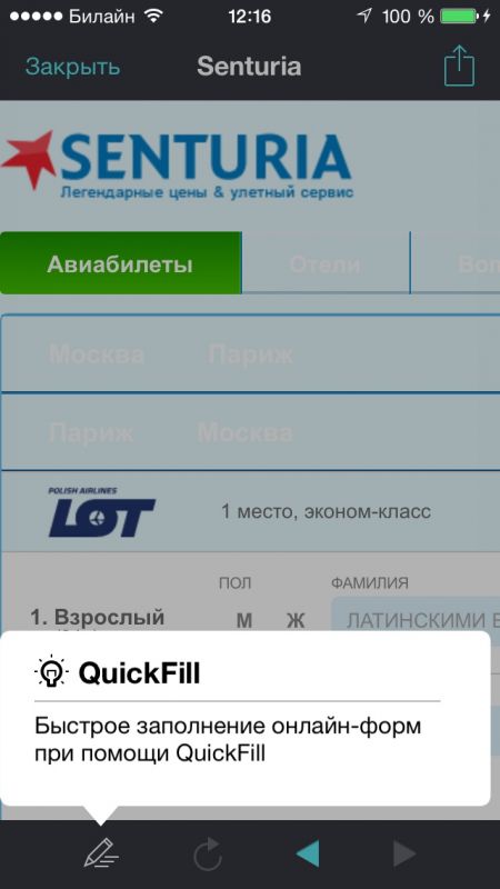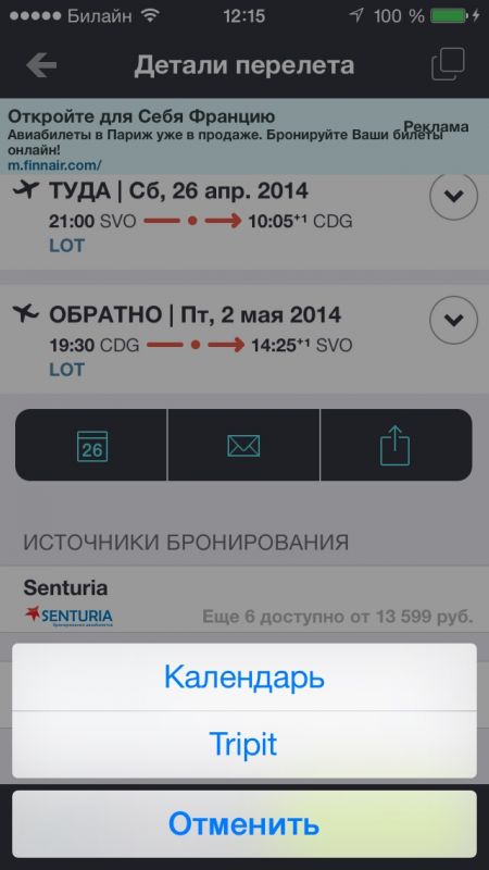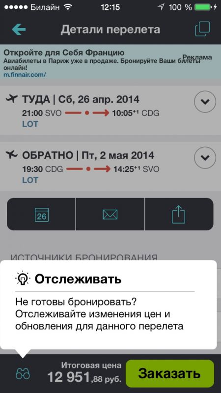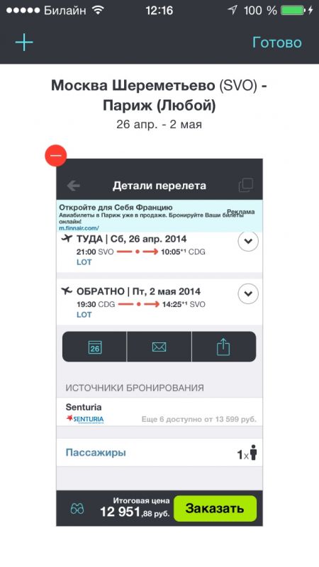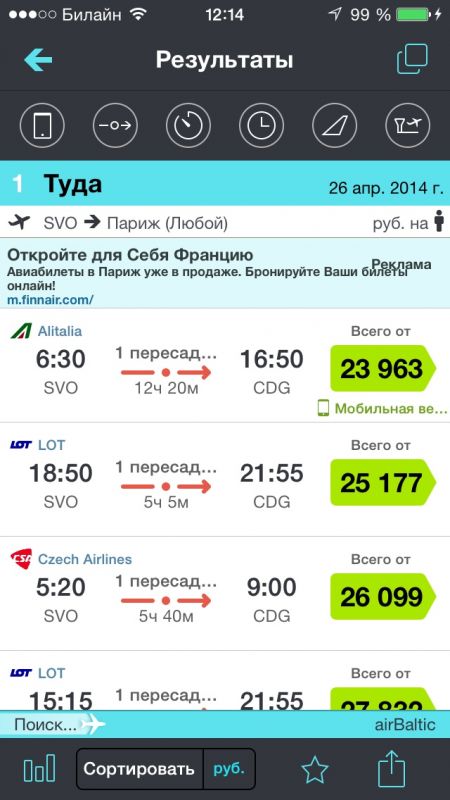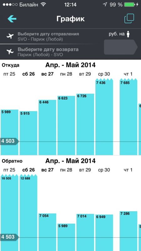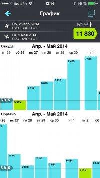 - Просмотр графиков цен на авиабилеты в вашем айфоне.