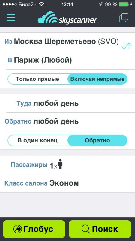 Skyscanner - одно из самых популярных приложений в мире по поиску дешевых авиабилетов. Более 30 миллионов пользователей по всему миру. При подборе рейса Skyscanner анализирует миллионы полетов и сотни авиакомпаний за секунды для того, чтобы найти и предложить вам дешевый авиабилет.