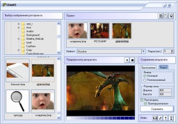 А может быть вы желаете подготовить семейный фотоальбом? SlideKS поможет вам в этом. В программу встроено более двухсот эффектов переходов от кадра к кадру, а настройка создаваемого альбома проще простого так как содержит лишь действительно необходимый минимум функций. Возможность сохранения результата как видео вы по достоинству оцените записав полученный файл на диск и просматривая его в обычном DVD-плеере!