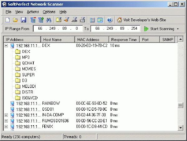 SoftPerfect Network Scanner – это удобный инструмент, позволяющий проводить многопоточное сканирование IP, SNMP (простой протокол сетевого администрирования, широко используемый в настоящее время, входит в стек протоколов TCP/IP) и NetBIOS.
