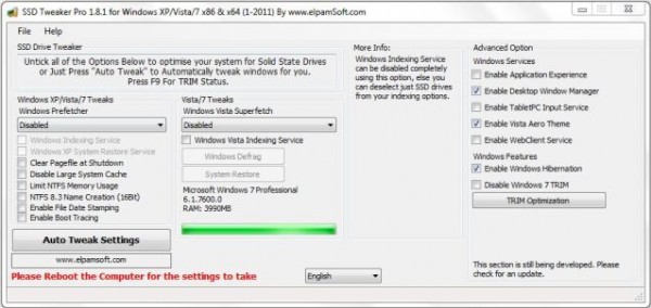 SSD Tweaker – небольшая, и что не мало важно, бесплатная утилита, предназначенная для повышения производительности SSD.