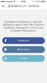 Приложение для простого обмена деньгами с друзьями. За переводы комиссия не взымается. Приложение запрашивает список контактов из телефона и социальных сетей для возможности перевода денег. Кроме того, через приложение можно оплатить ЖКХ, штрафы, покупки в интернете и проч. Для работы с приложением необходимо указать свой мобильный телефон. На него будет отправлен код подтверждения.
