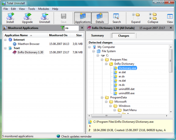 Total Uninstall позволяет отследить любые изменения, происходящие с компьютером, при установке на него программного обеспечения, а затем полностью устранить их в процесс деинсталляции ПО. Осуществляется процесс мониторинга изменений в реестре и файловой системе, ведется статистика изменений, имеется богатый набор опций и удобный интерфейс, поддерживается русский интерфейс.