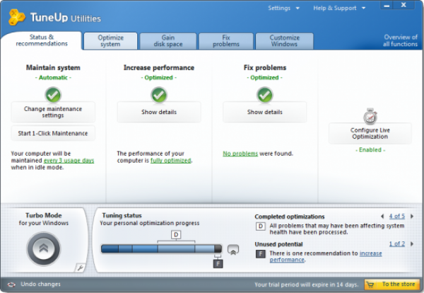TuneUp Utilities – это пакет программа, предназначенных для оптимизации системы и поддержания ее в работоспособности. Все утилиты TuneUp Utilities обледенены в одну графическую оболочку, что еще больше облегчает работу.
