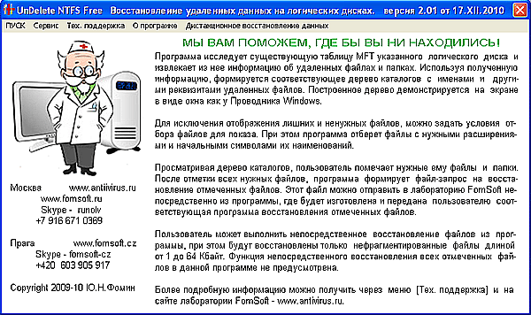 восстановление отмеченных файлов. Этот файл можно отправить в лабораторию FomSoft непосредственно из программы, где будет изготовлена и передана пользователю соответствующая программа восстановления отмеченных файлов.