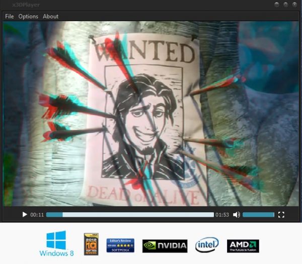 x3DPlayer Portable – это удобный видео проигрыватель с поддержкой воспроизведения 3D фильмов.