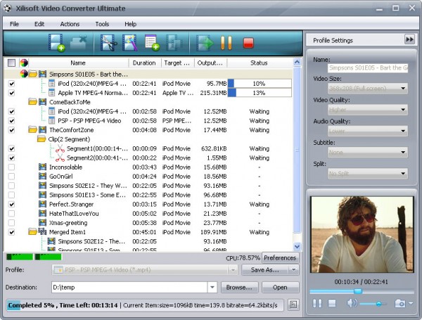 Xilisoft Video Converter– удобная программа для конверсии практически всех известных видео и некоторых аудио форматов между собой. Особенностью программы является возможность прямого конвертирования видео в форматы для IPod, iPhone, Apple TV, PSP и Zune и других устройств.