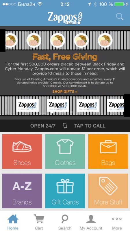 Приложение для iOS популярного магазина Zappos.com. Реализован удобный просмотр товаров с сайта, в первую очередь обуви и одежды. Интерфейс детально продуман. Можно сделать заказ прямо из приложения. Все товары имеют качественное фото, а некоторые еще и видео. С помощью фильтров можно отобрать обувь по своему вкусу.